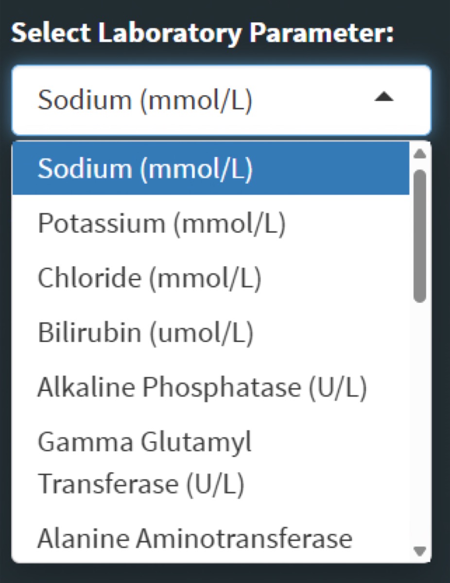 さらに、Select Laboratory Parameterで表示する検査項目を変えることができます。